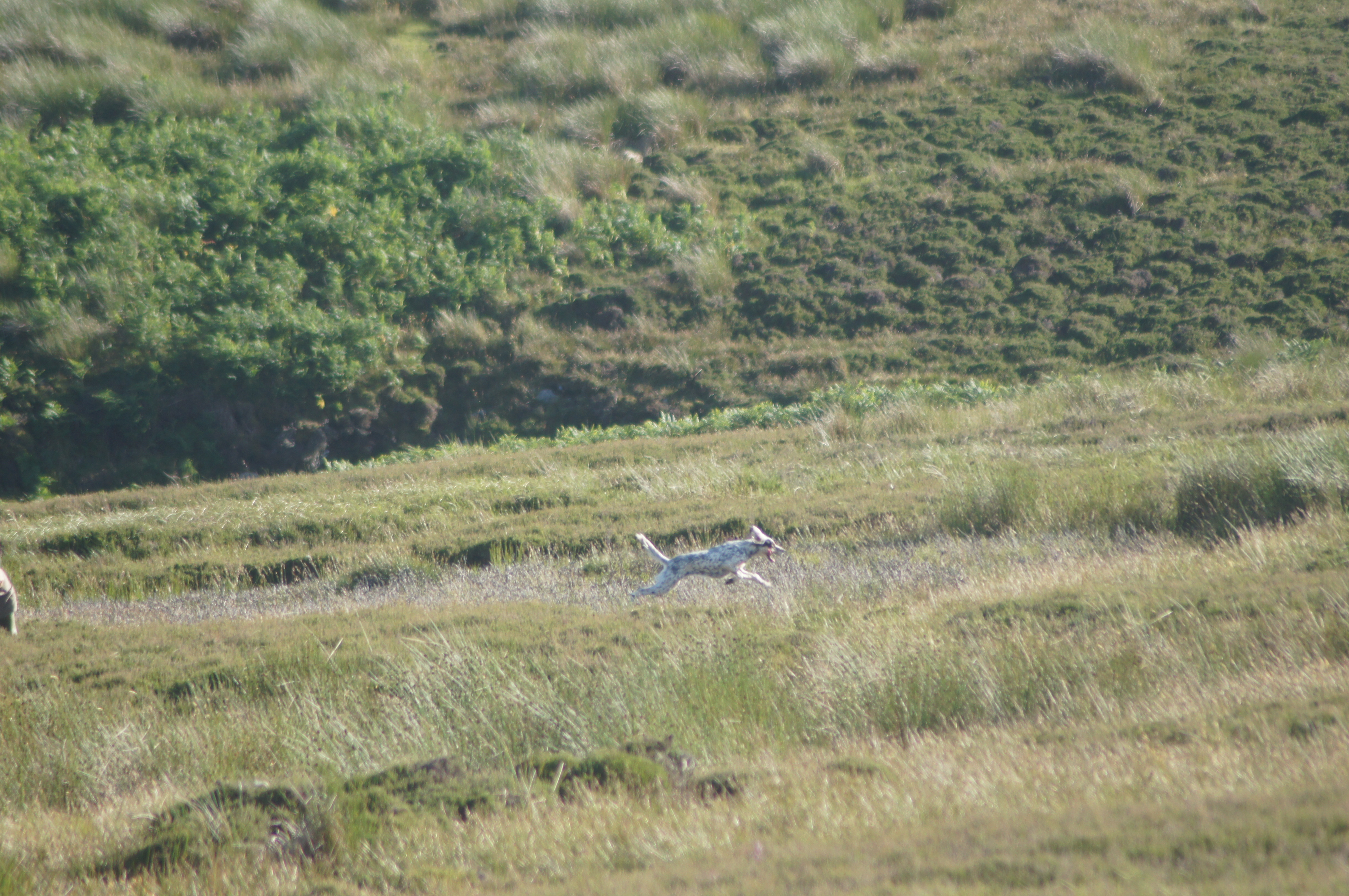 Her first trial was the Scottish Gundog Association’s Novice Stake at Glenlivet. Conditions were very blustery making grouse very unsettled. There was also a good sprinkling of hares to liven up proceedings! Flake ran well and had a very clever find in a ravine where the wind was every which way. Flake came out as top dog on the day – a very good start to the trip.